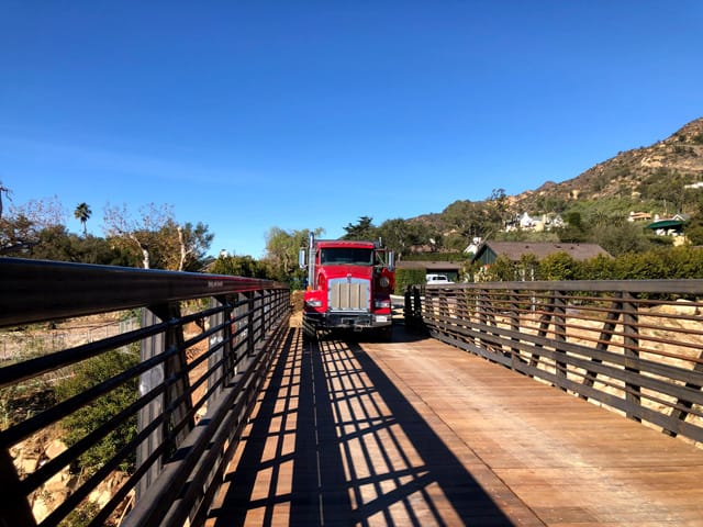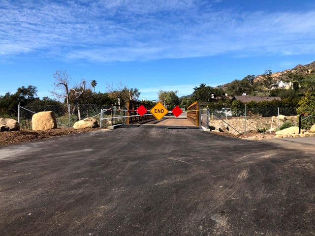 E. Mtn. Drive Bridge at San Ysidro Creek - [2020-2021]This project consisted of installing a 75’x16’ prefabricated steel truss bridge to replace a bridge that was destroyed by the Thomas Fire Debris Flow in 2018. The County of Santa Barbara Contracted with Peter Lapidus Construction, Inc. for the project construction. The project consisted of : installing 24” drilled concrete pilings to a depth of 35’, constructing cast in place abutments & wingwalls with embedded anchors, assembling the bridge, craning it into place & attaching it. Once the bridge was installed, we performed all the site grading, asphalt milling, utility adjustments & asphalt paving. The job had a maximum 40 working day duration which spanned over the Christmas New Years holiday. The agency added extra scope & we were still able to finish under the 40 day maximum window time frame. It was great to be involved in putting our community back together after the disaster. This project has special meaning as we worked at neighboring properties cleaning up shortly after the disaster. To see it all coming back together was very satisfying. |