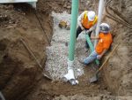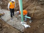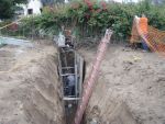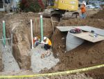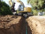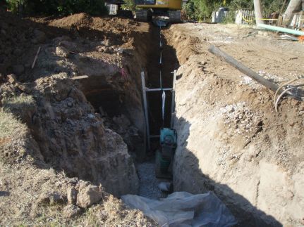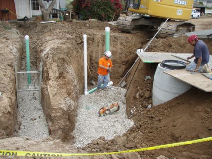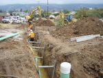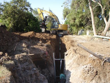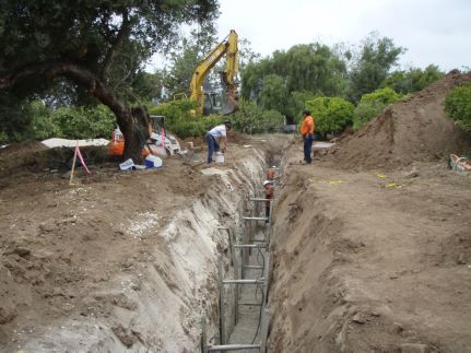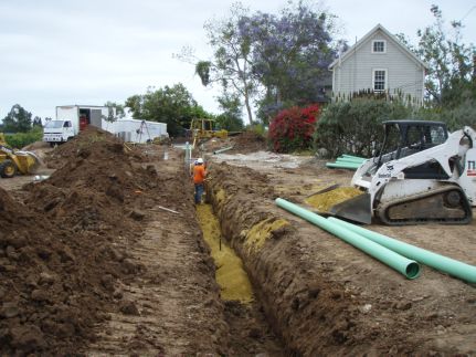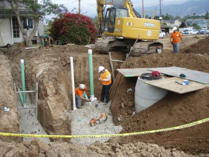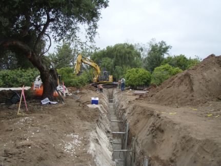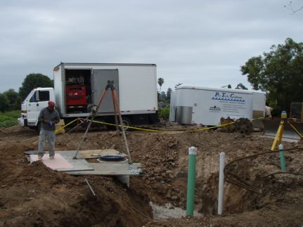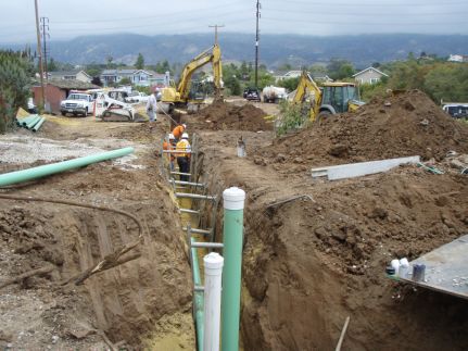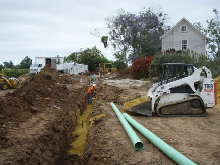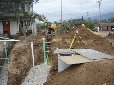 The work involved the extension of the Goleta sanitary sewer main onto the property along with various manholes and lateral lines for present and future use. A new entrance road was constructed along with new utility installations and site grading for the compound. |