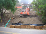 | Carpinteria Creek Bailard Stream Bank Restoration We were awarded the job of restoring the bank of Carpinteria Creek on an agricultural piece of land. The bank had washed out during El Nino rains of 2005 and 2007, but needed to be reconstructed to native condition, as ordered by the Department of Fish & Game and other government agencies. |